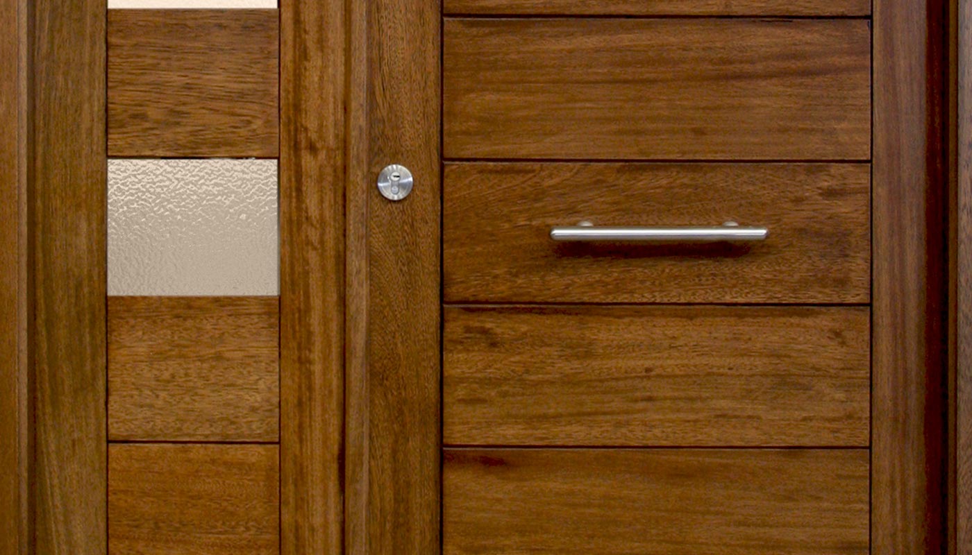 Ofrecen una entrada robusta y llena de carácter, con detalles que resaltan la belleza natural de la madera.