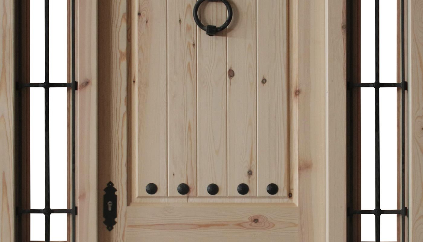 Algunos detalles de acabados y maderas de nuestras puertas de exterior rústicas en maderas macizas y laminadas.