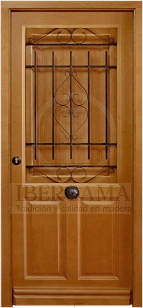 La puerta de madera con reja de diseño elegante combina la calidez de la madera con la seguridad del hierro forjado, ideal para realzar la entrada de tu hogar. Fabricada con madera maciza de alta calidad, su acabado en barniz natural resalta las vetas de la madera, brindando un toque acogedor. Su diseño incluye paneles bien definidos, con molduras clásicas en la parte inferior, y una reja de hierro forjado con un intrincado diseño de círculos y curvas en el centro, montado sobre una ventana que permite la entrada de luz. Equipadas con cerradura de cilindro de latón resistente, esta puerta garantiza durabilidad y alta seguridad. Disponible en varias dimensiones estándar y con opción de fabricación a medida, es perfecto para entradas principales y oficinas que buscan una imagen distinguida. Porta seguridad y elegancia a tu hogar con esta puerta única. ¡Solicita tu presupuesto ya!