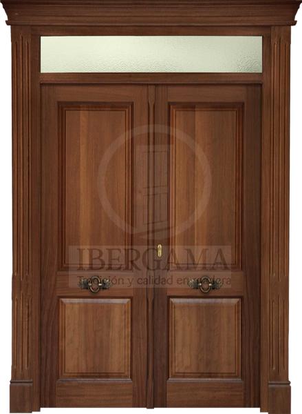 La puerta de dos hojas de madera con montante superior aporta un toque de elegancia clásica y sofisticación a tu hogar, ideal para quienes buscan una entrada imponente y funcional. Fabricada con madera maciza de alta calidad y un acabado en barniz que resalta las vetas naturales, presenta dos hojas con paneles rectangulares grandes en la parte superior e inferior, enmarcadas con molduras clásicas. Un panel de vidrio esmerilado en la parte superior permite la entrada de luz natural sin comprometer la privacidad, mientras que los tiradores metálicos decorativos añaden un toque distintivo. Equipadas con herrajes de alta seguridad y bisagras robustas en acabado de latón, esta puerta está diseñada para resistir el paso del tiempo. Perfecta para entradas principales que buscan un toque de elegancia, ofrece una bienvenida elegante y robusta. Disponible en medidas estándar y personalizadas, es la opción ideal para embellecer tu hogar. ¡Solicita tu presupuesto hoy mismo!