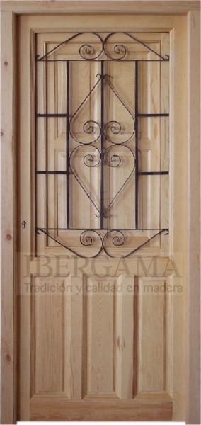 La puerta de madera maciza con ventana y reja de forja ofrece una combinación de estilo tradicional y seguridad, con un acabado al natural que permite darle el acabado que se desee, resaltando las vetas de la madera, aportando una apariencia cálida y refinada. Su diseño incluye paneles rectangulares enmarcados con molduras elegantes, y una reja decorativa de hierro forjado en el centro que permite la entrada de luz natural, manteniendo la seguridad. Los herrajes de alta seguridad y las bisagras robustas, en acabado de latón, garantizan durabilidad. Ideal para entradas principales de residencias y oficinas, esta puerta ofrece funcionalidad, protección y estética clásica, disponible en medidas estándar y en las medidas que sean necesarias.