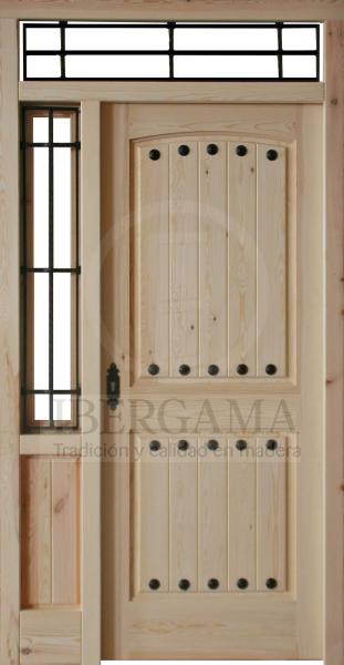 Puerta Rústica Exterior Arco Clavos, Fijo y Montante